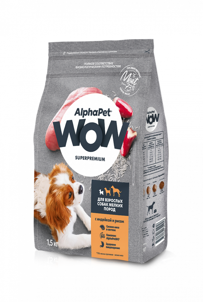 Описание AlphaPet WOW (АльфаПет) с индейкой и рисом сухой для собак мелких пород 1,5кг: