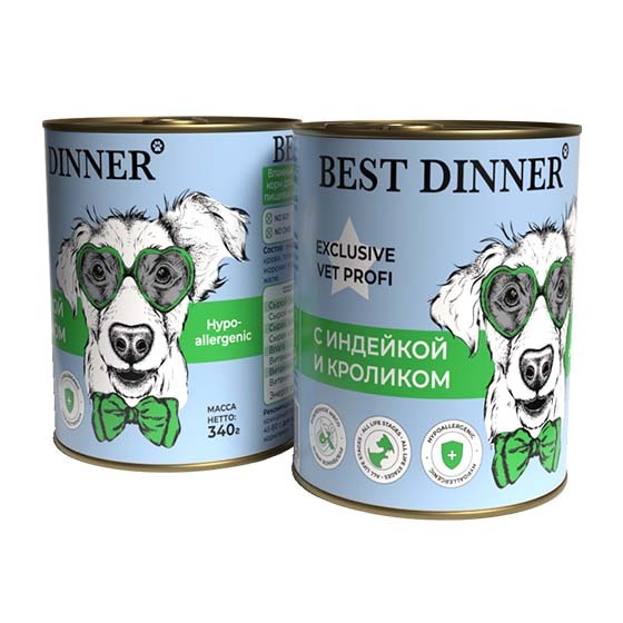 Best Dinner Exclusive Vet Profi Hypoallergenic (Бест Диннер Эксклюзив Вет профи Гипоаллердженик для собак с индейкой и кроликом)