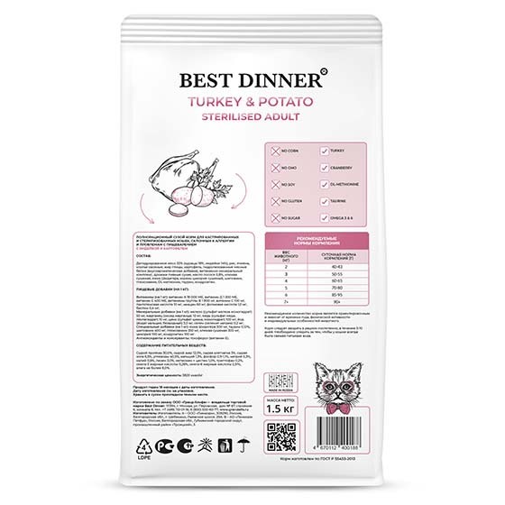 Best Dinner Sterilised Adult Turkey & Potato (Бест Диннер для стерилизованных кошек Индейка + Картофель)