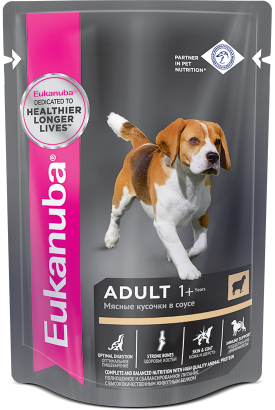 Описание Eukanuba влажный корм для взрослых собак с ягненком пауч 100 г: