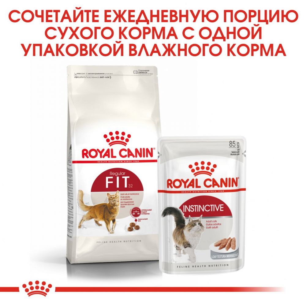 Продукт ROYAL CANIN Fit 32 (Роял канин Фит 32) предназначен для взрослых кошек в возрасте от 1 года до 7 лет. Корм учитывает потребности кошек и позволяет им поддерживать здоровье и жизненный тонус. Вашей кошке нужен корм высокого качества, учитывающий особенности взрослого животного.