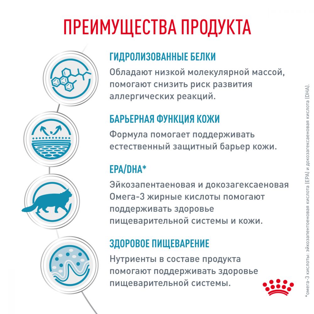 Royal Canin HYPOALLERGENIC (ГИПОАЛЛЕРДЖЕНИК) Корм сухой полнорационный диетический для взрослых кошек, применяемый при пищевой аллергии или пищевой непереносимости. Ветеринарная диета.