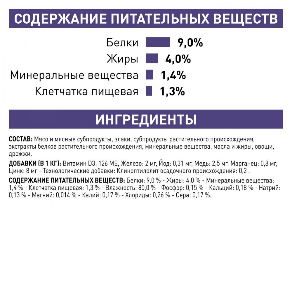 Корм консервированный полнорационный диетический для котов и кошек старше 7 лет, не имеющих видимых признаков старения. Ветеринарная диета