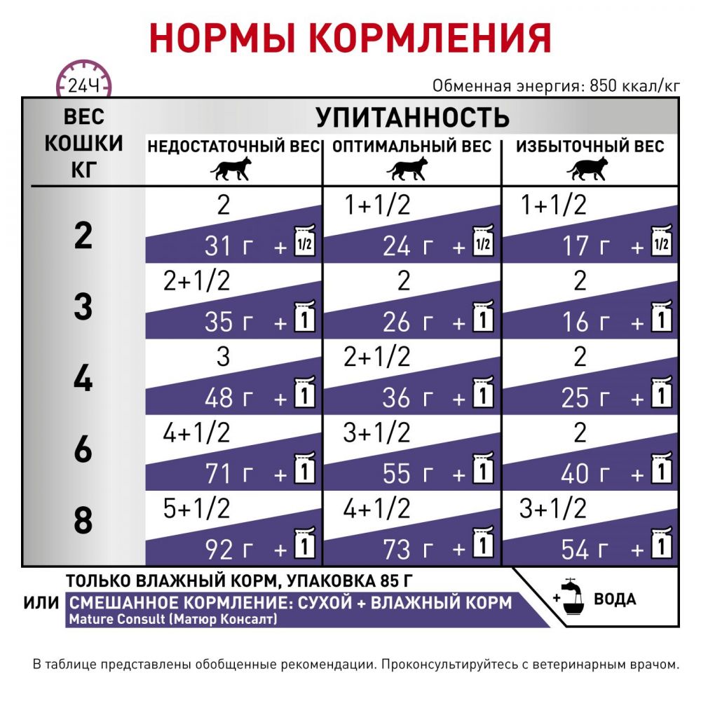 - Оптимальный уровень защиты. Калорийность корма соответствует потребностям в энергии взрослого животного, имеющего нормальный или недостаточный вес (ниже либо равно 3 баллам по шкале упитанности кошек).