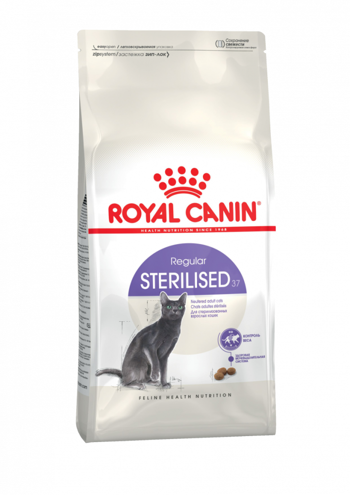 ROYAL CANIN® Sterilised 37 помогает снизить риск появления избыточного веса, благодаря умеренному содержанию жиров, при соблюдении рекомендуемых норм кормления.