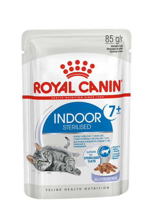 При первых признаках старения взрослым кошкам, постоянно живущим в помещении, для поддержания оптимального здоровья особенно важно получать полноценное сбалансированное питание. ROYAL CANIN® Indoor 7+ в желе предназначен для кошек старше 7 лет, постоянно живущих в помещении, и разработан с учетом потребностей таких кошек в питательных веществах.