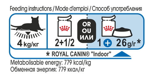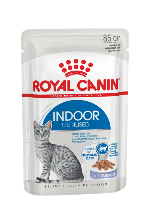 Кроме того, Indoor Sterilised в желе включает в себя энергетическое соотношение белков, жиров и углеводов, интинктивно предпочитаемое большинством кошек, а низкая калорийность способствует чувству насыщения.